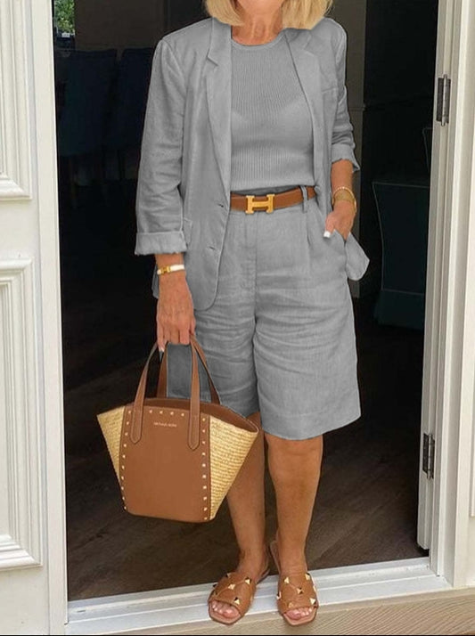 Casual σετ δύο τεμαχίων με μακρυμάνικο σακάκι και σορτς