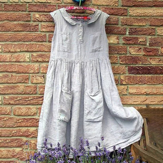 Vintage φόρεμα με φαρδιά τσέπη και έξω ώμους, αμάνικο, μίντι