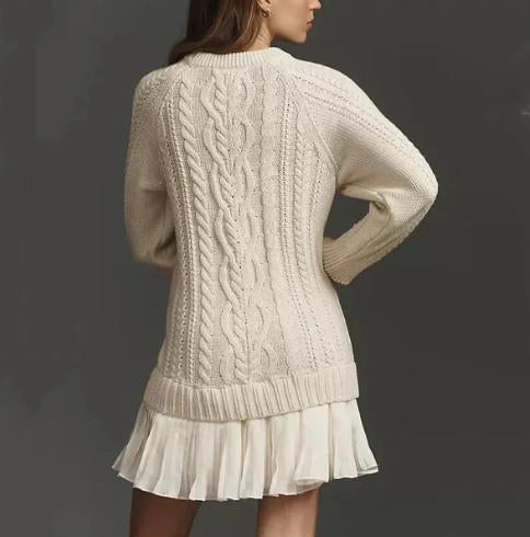 Γυναικείο φόρεμα μίντι με πλεκτό σχέδιο και μακριά μανίκια, άνοιξη/φθινόπωρο