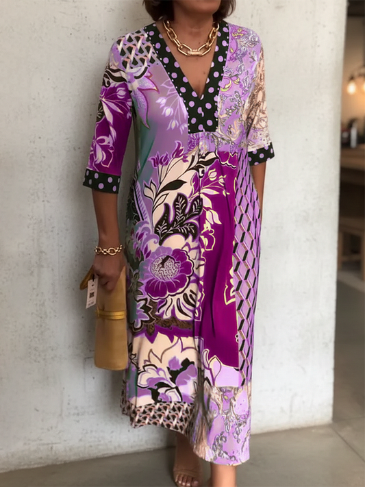 Γυναικείο Φόρεμα με V-Neck και Φλοράλ Στάμπα
