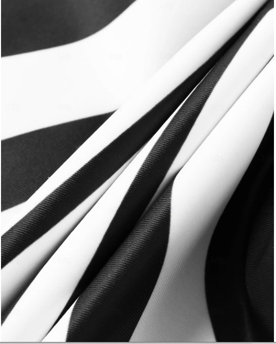 [Κύρια σημεία σχεδιασμού]: Αυτό το μαγιό διαθέτει ένα έντονο ασπρόμαυρο ριγέ μοτίβο, δημιουργώντας ένα εκπληκτικό εφέ οπτικής ψευδαίσθησης. Η κλασική στρογγυλή λαιμόκοψη και οι φαρδιές τιράντες σε στυλ γιλέκου αυξάνουν την υποστήριξη και ενισχύουν την κομψότητα, ενώ ο σχεδιασμός με την ανοιχτή πλάτη προσθέτει μια μοντέρνα πινελιά.