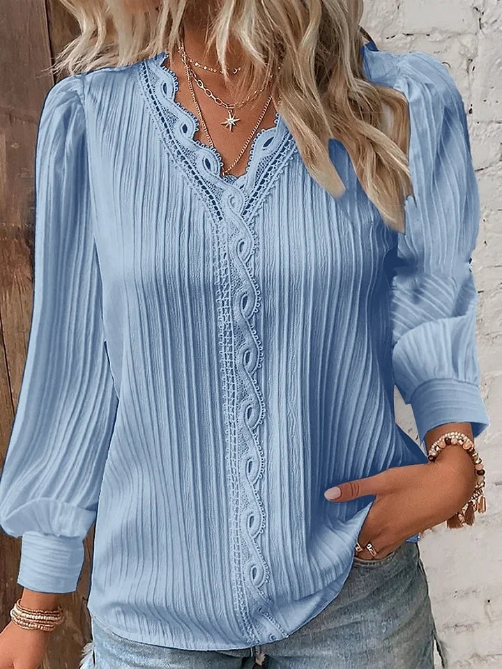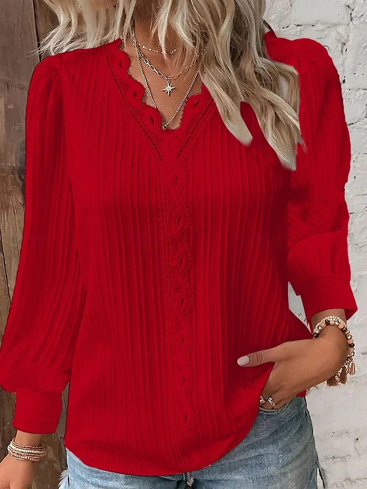 Κομψό και μοντέρνο μονόχρωμο γυναικείο δαντελένιο πουκάμισο