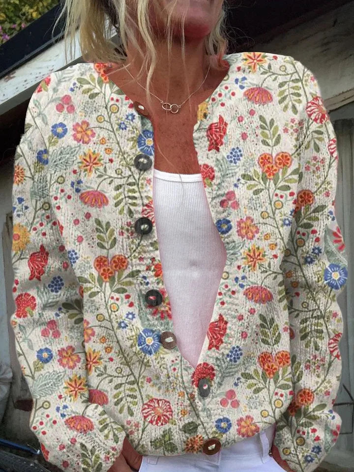 Ζακέτα με κουμπιά και τύπωμα ροζ τριαντάφυλλο