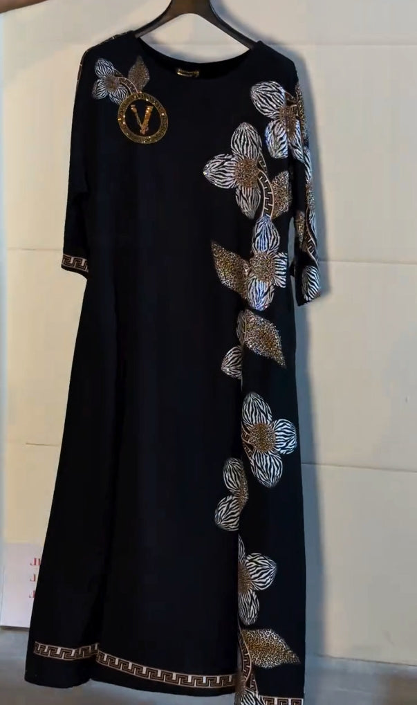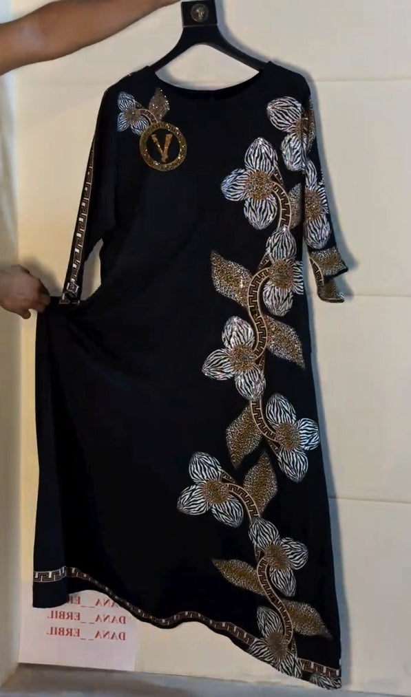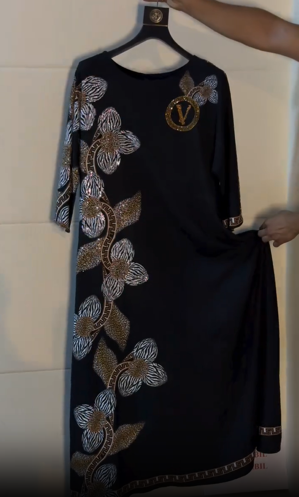 Φόρεμα casual με στρογγυλή λαιμόκοψη και τύπωμα με στρας