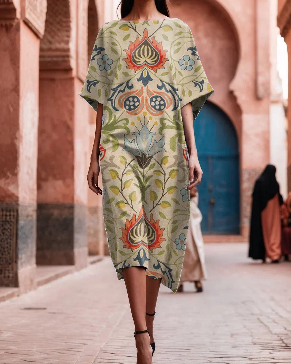 Γυναικείο κομψό φαρδύ φόρεμα με στάμπα