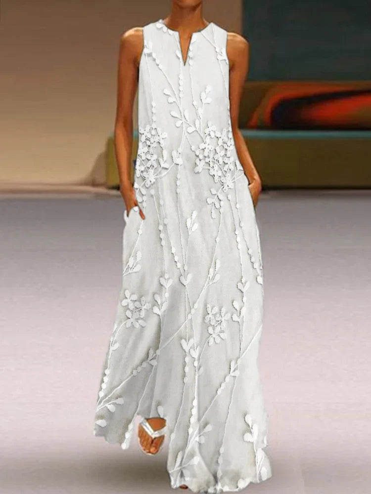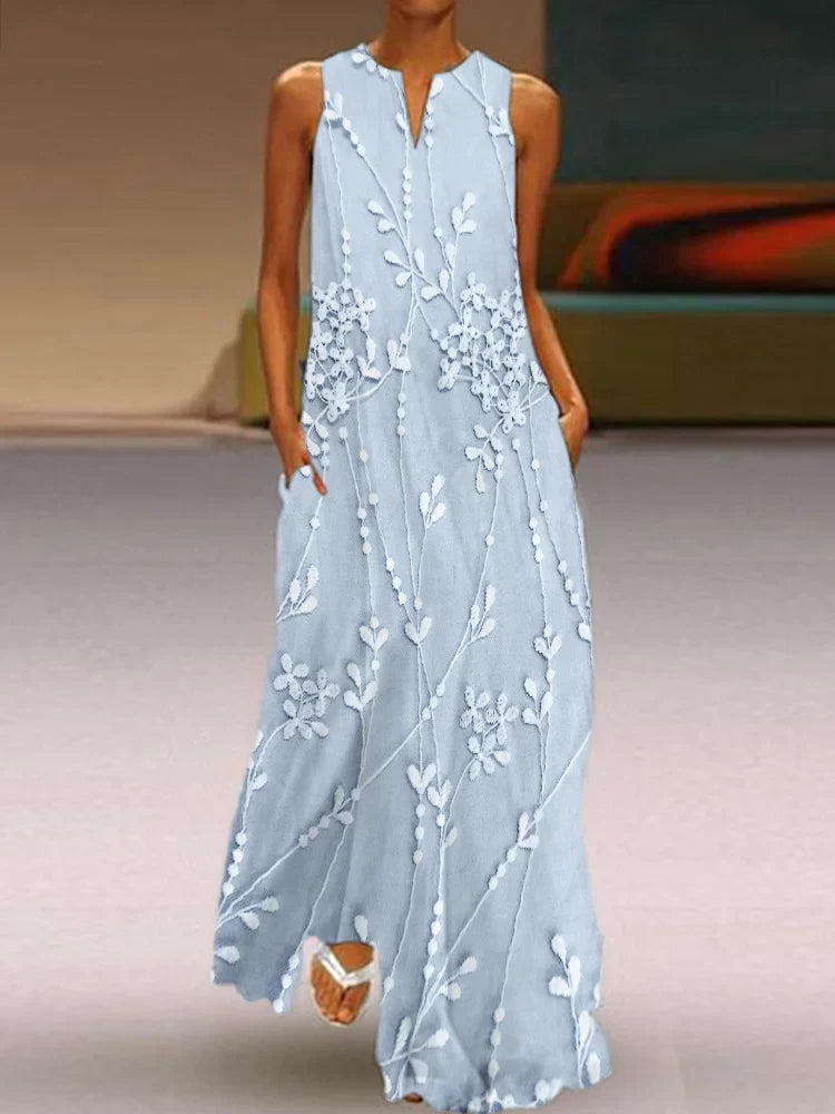 Κομψό ρέον μάξι φόρεμα με φλοράλ κεντημένη δαντέλα
