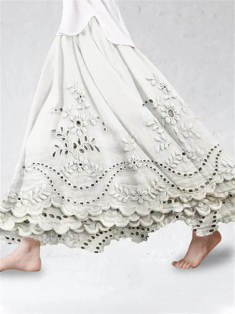 Φούστα από λινό μείγμα με φλοράλ κεντημένη δαντέλα