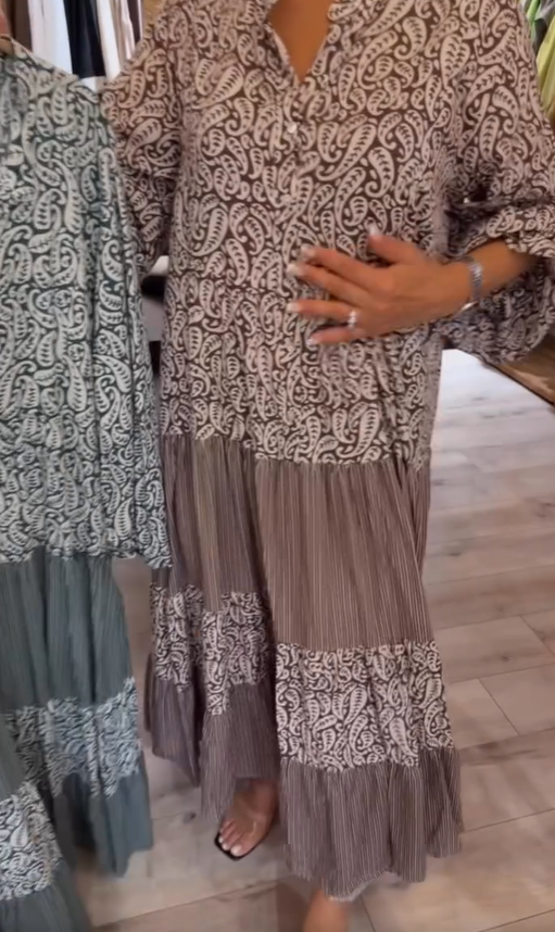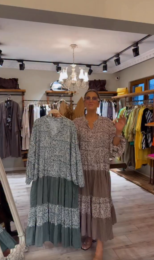 Σχεδιασμός: Το φαρδύ μπούστο δημιουργεί μια άνετη και χαλαρή αίσθηση. Η λαιμόκοψη σε σχήμα V αποκαλύπτει ένα όμορφο ντεκολτέ, ενώ τα φαρδιά μανίκια προσθέτουν μια ρετρό γοητεία.