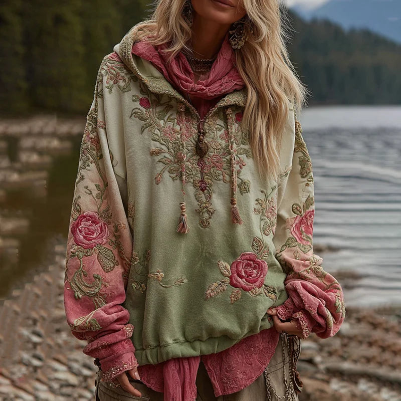 Casual μποέμ φούτερ με κουκούλα