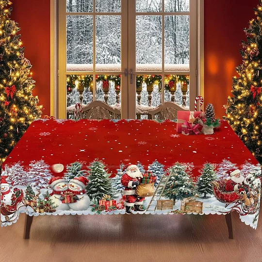 Χριστουγεννιάτικο τραπεζομάντιλο υψηλής ποιότητας - γοητευτική εκτύπωση Άγιου Βασίλη και ταράνδου, φέρνει χαρά στην οικογένεια