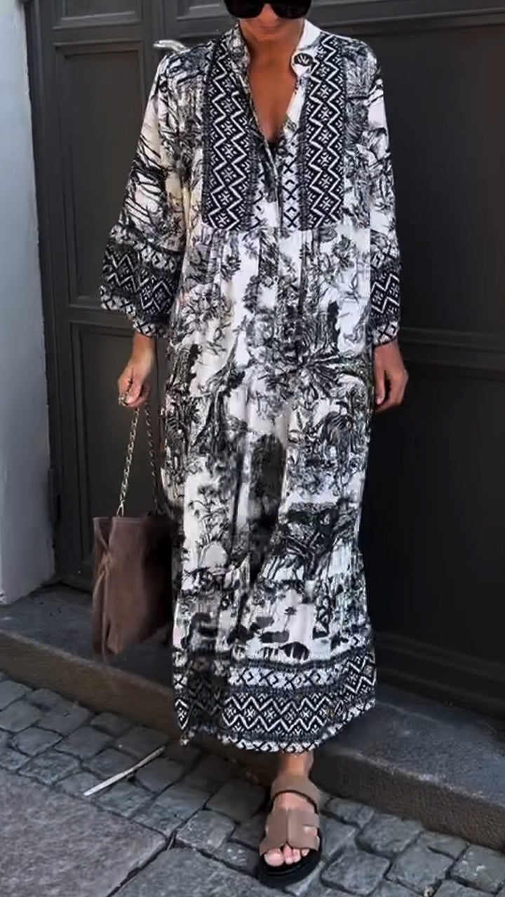 Γυναικείο χαλαρό casual φόρεμα με τύπωμα γιακά