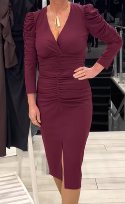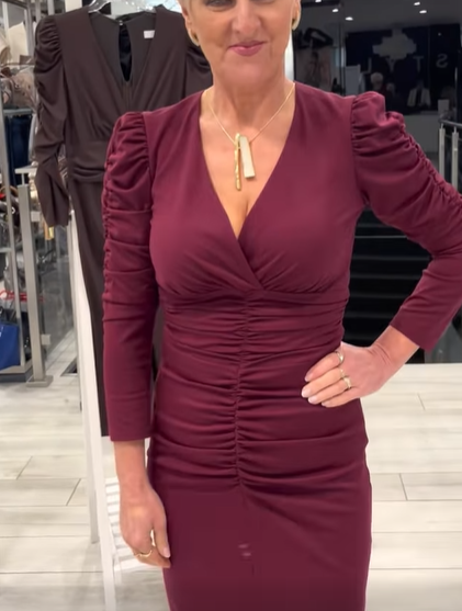 Κομψό γυναικείο φόρεμα με πτυχώσεις και V λαιμόκοψη