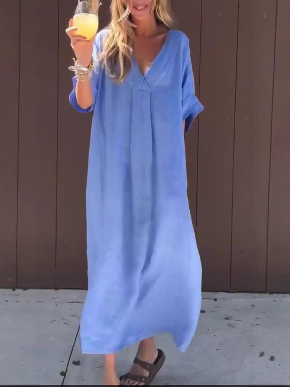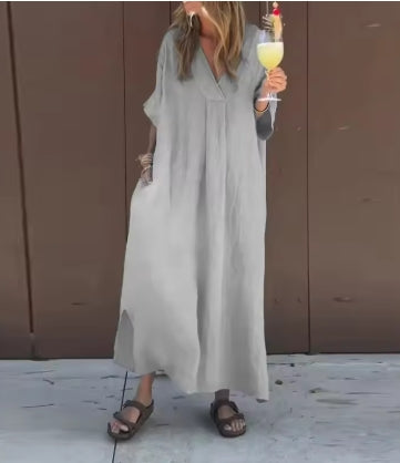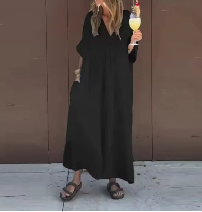 Κομψό μποέμ μακρύ φόρεμα με λαιμόκοψη V