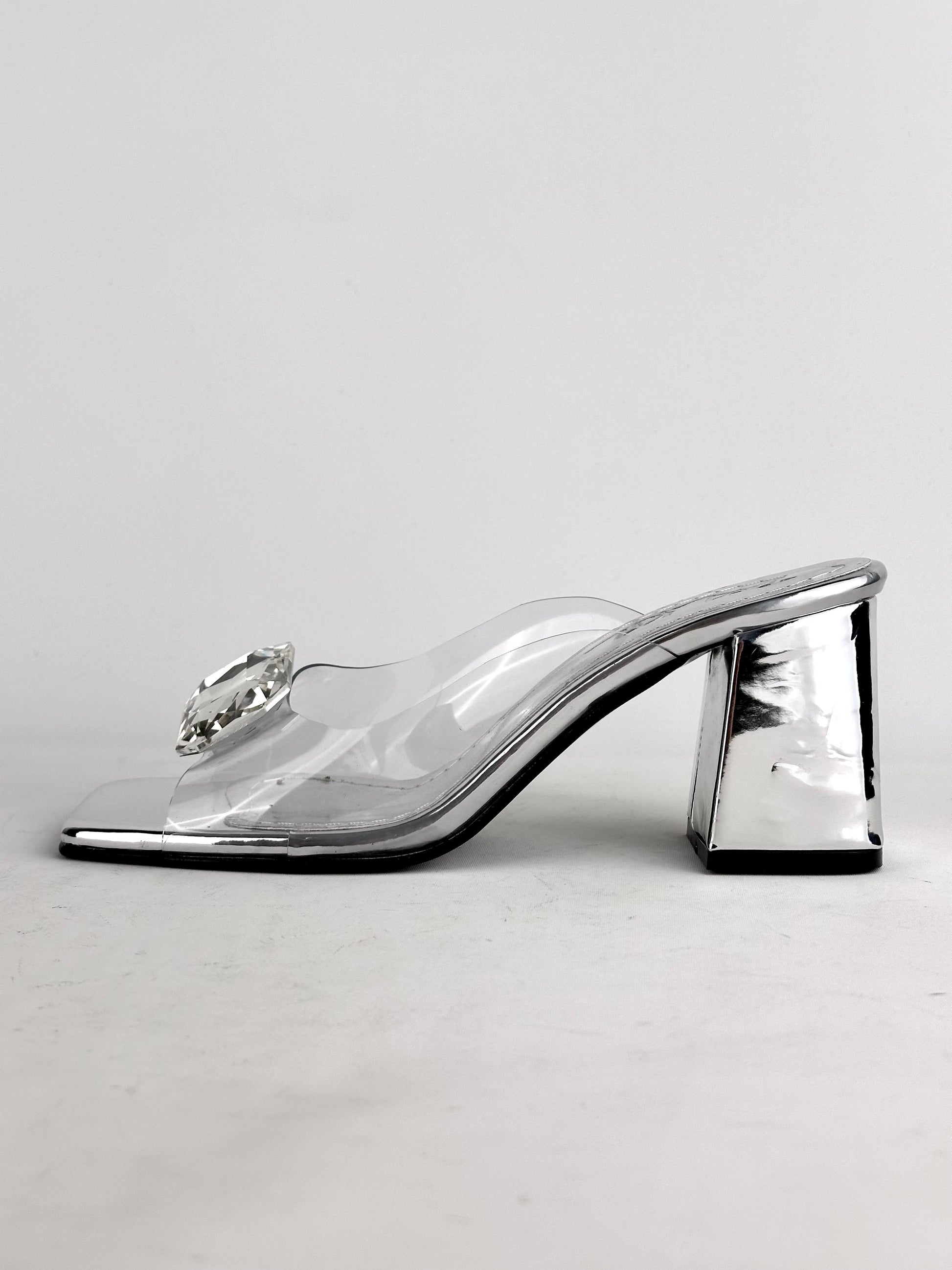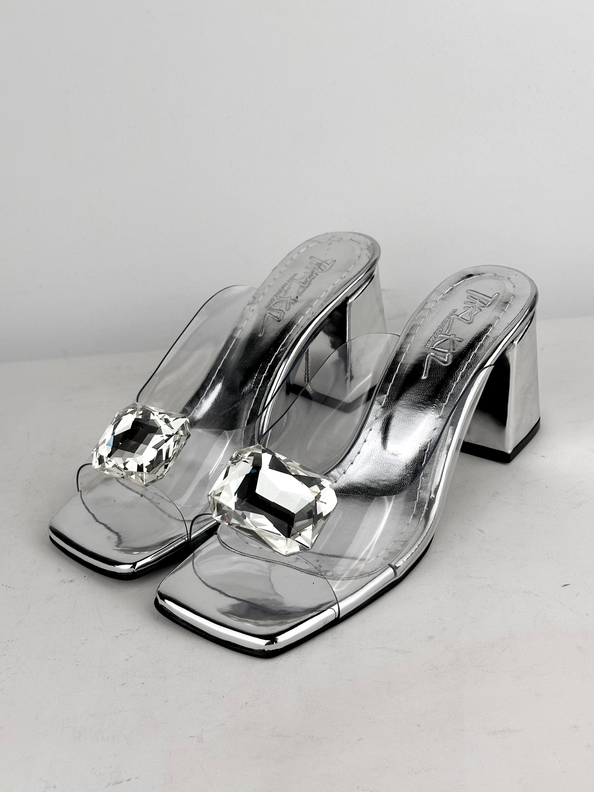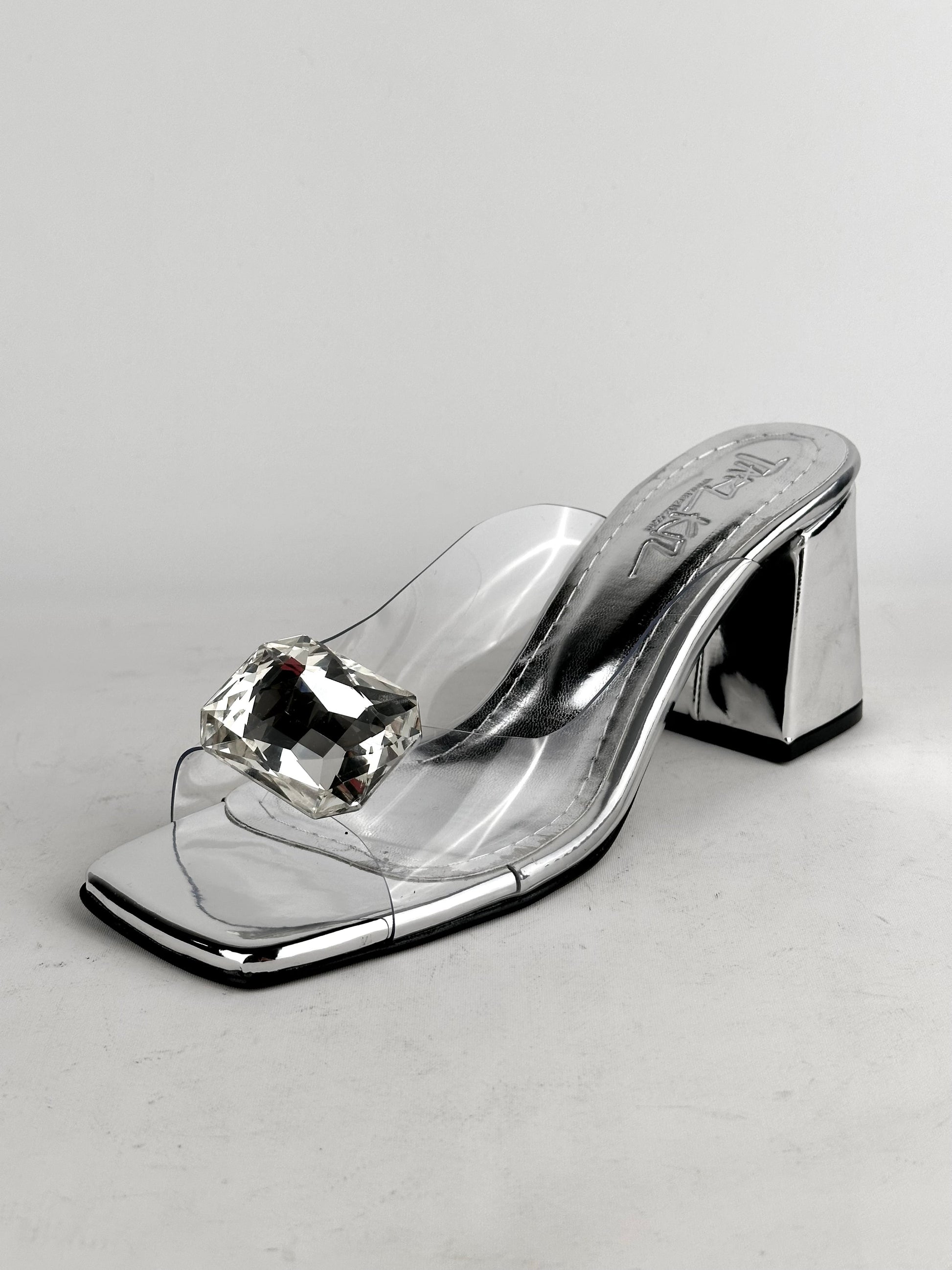 Καλοκαίρι 2025, τετράγωνη μύτη, χοντρό τακούνι, διαφανές, κρύσταλλο, ψηλοτάκουνο