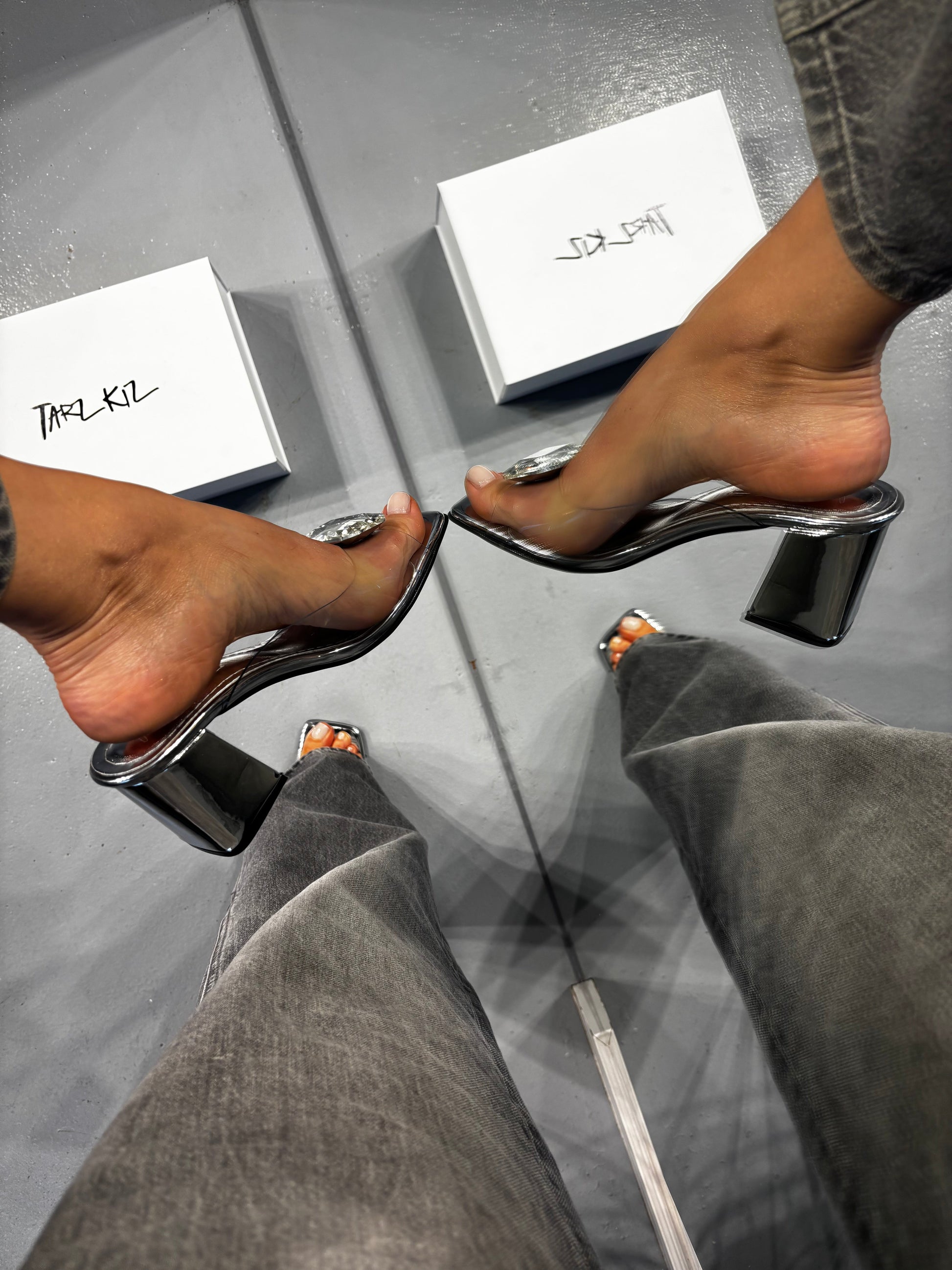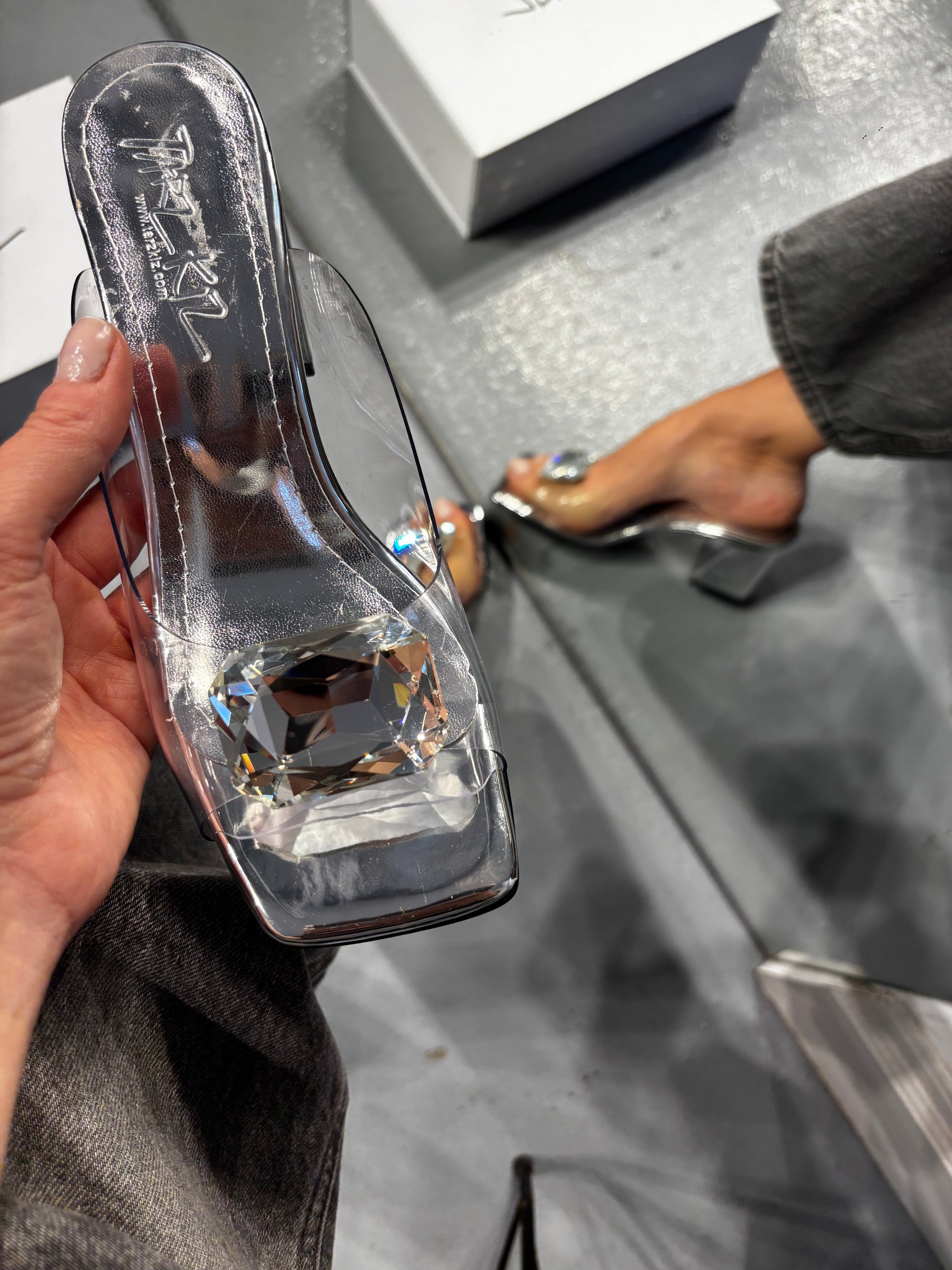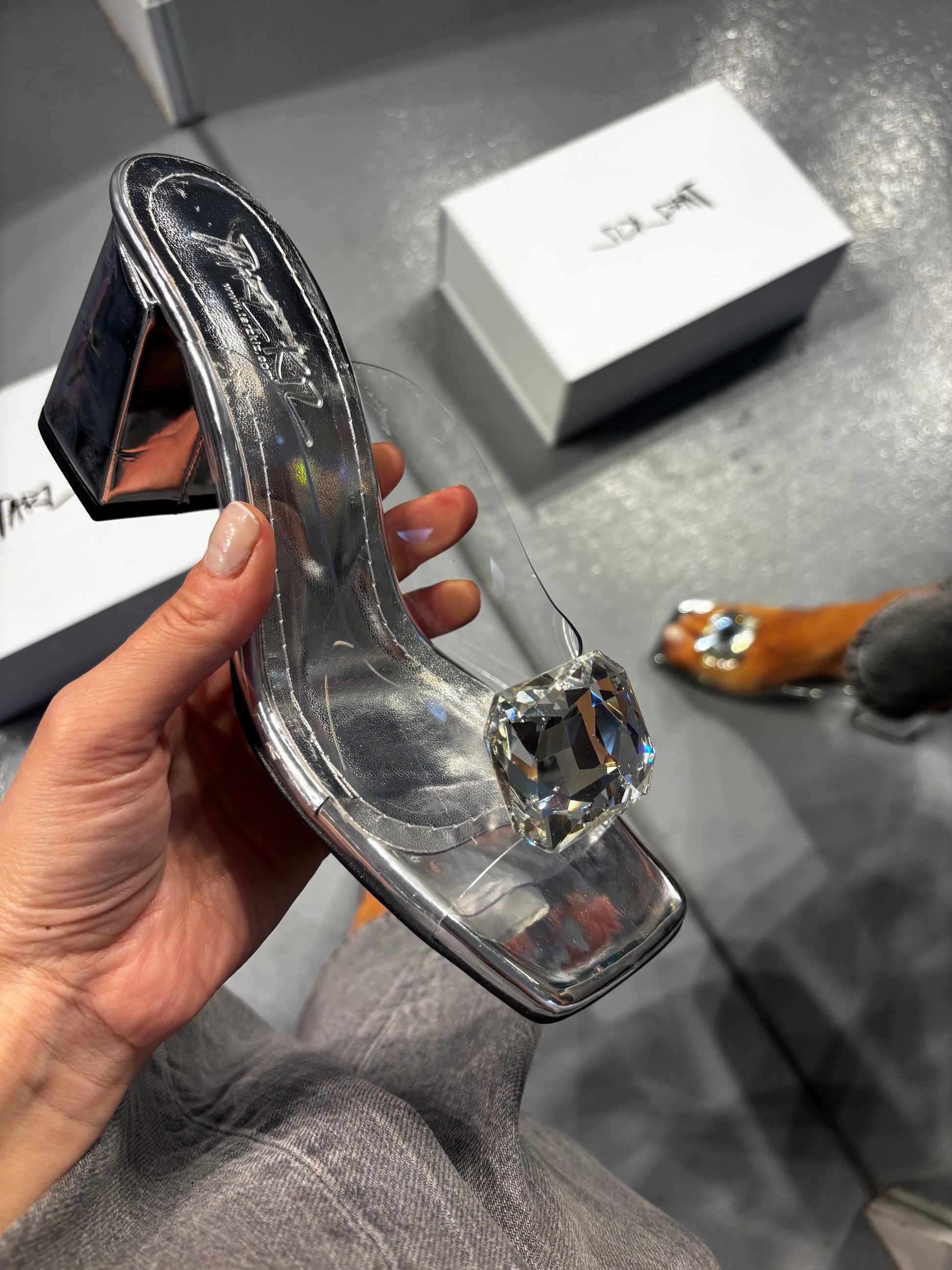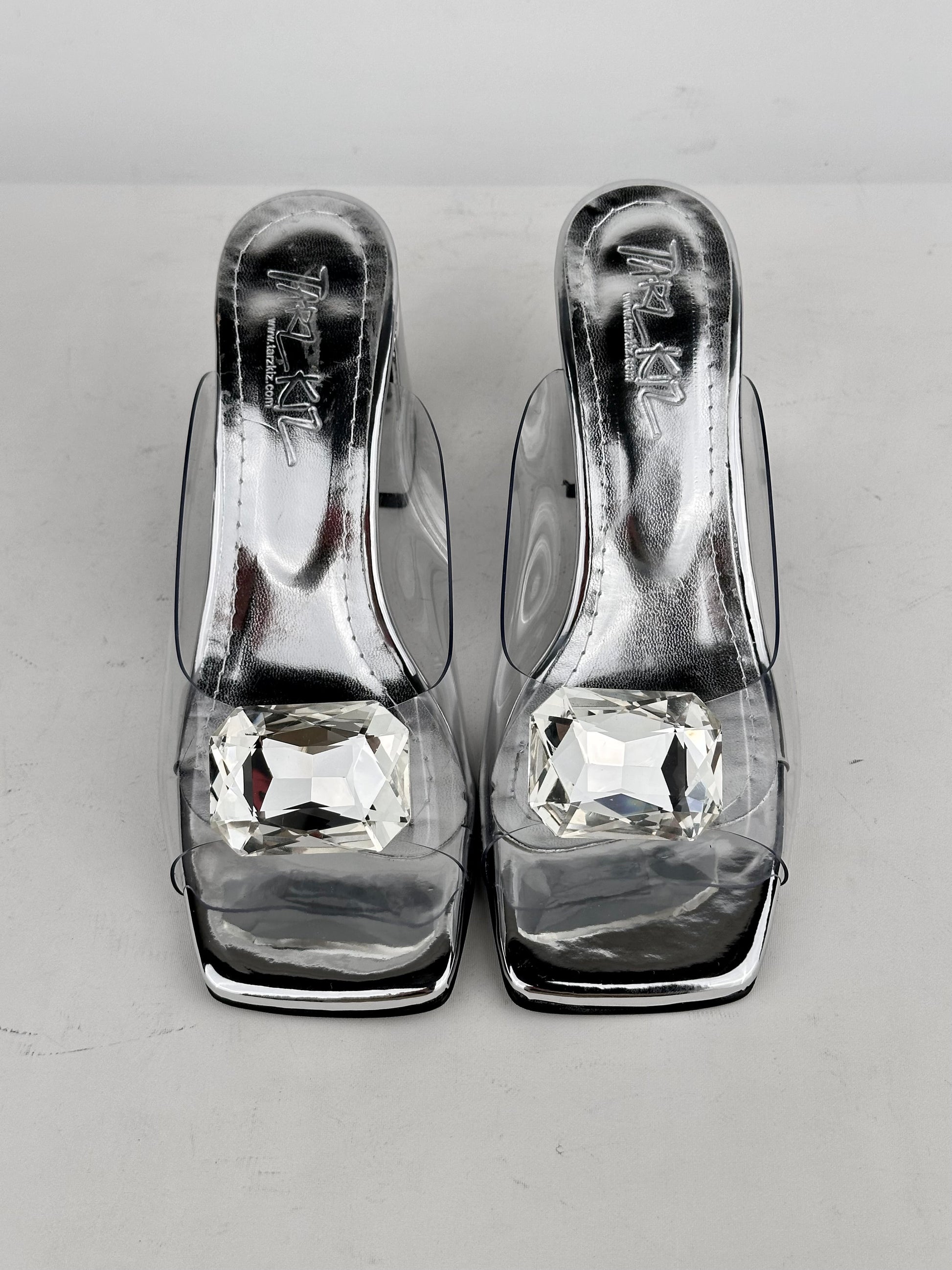 Καλοκαίρι 2025, τετράγωνη μύτη, χοντρό τακούνι, διαφανές, κρύσταλλο, ψηλοτάκουνο