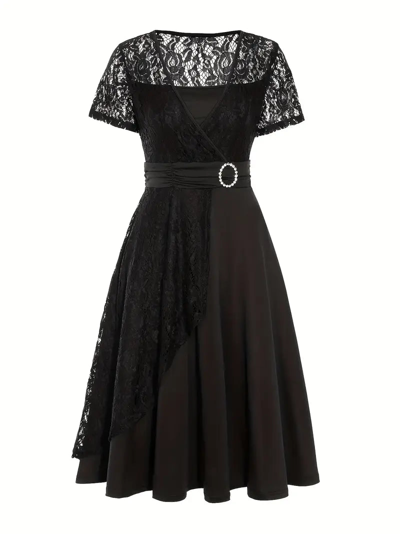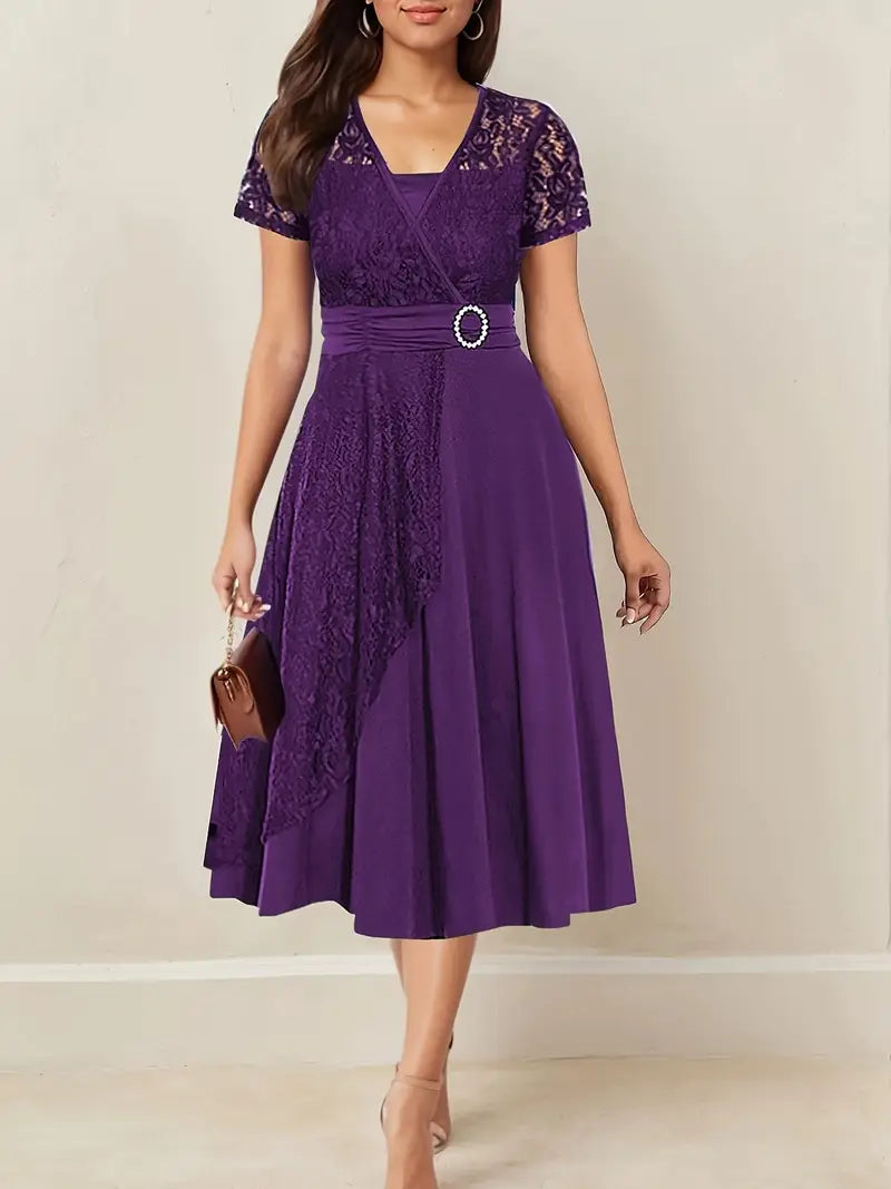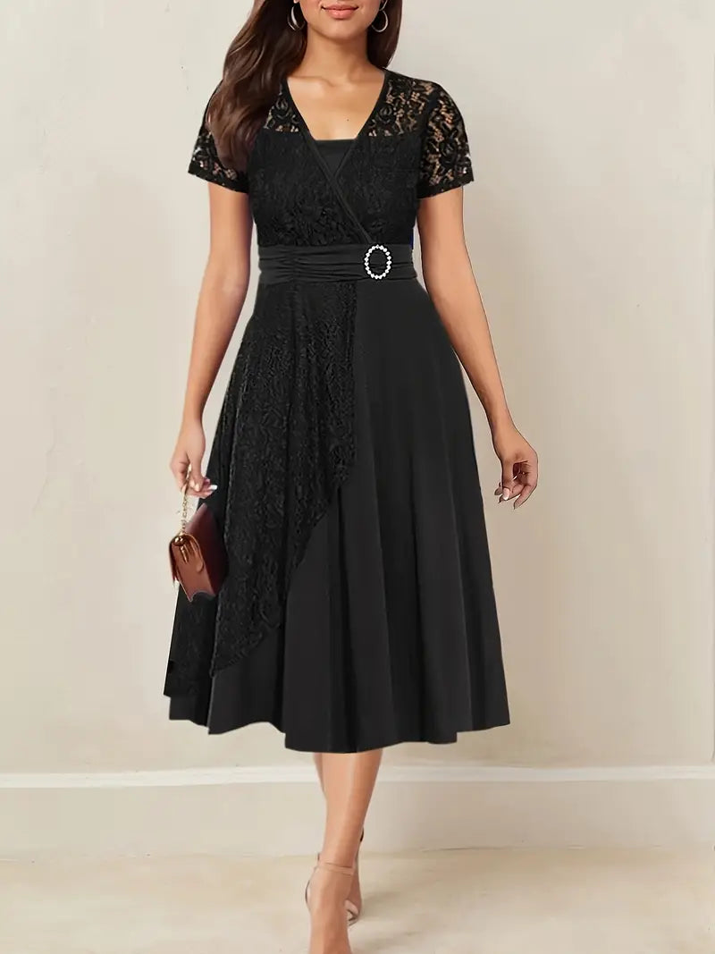 Κομψό γυναικείο φόρεμα με δαντέλα και V λαιμόκοψη